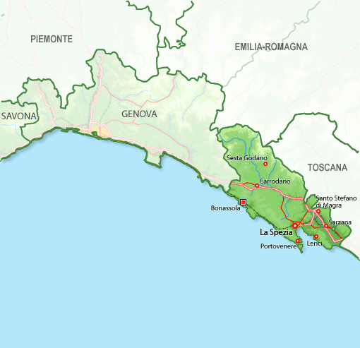 A21 (TO-PC-BS ) –Tortona-A7 direzione GE- A12 direzione LI – Uscita Deiva Marina -19 km direzione Bonassola